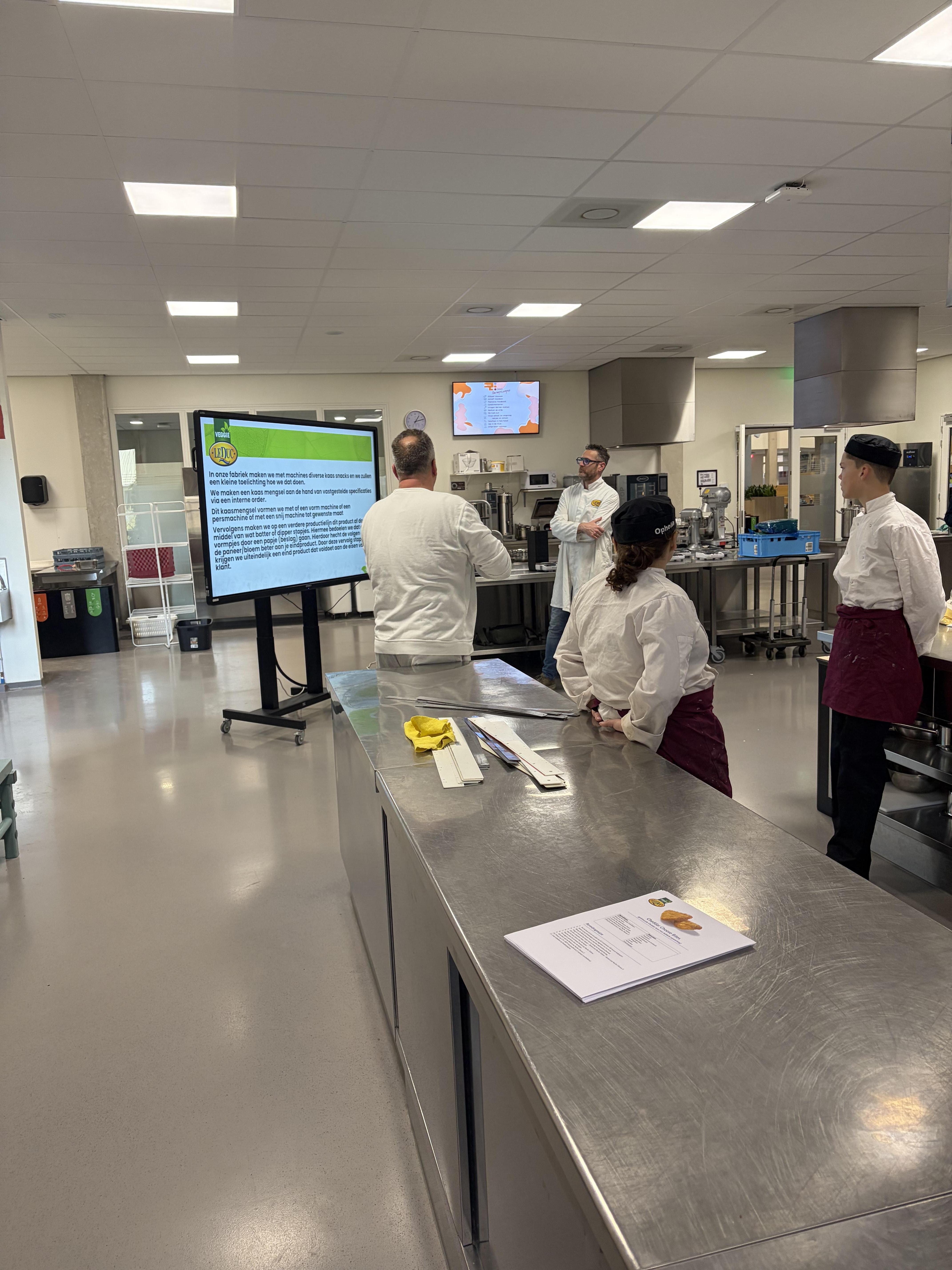 De gastles werd verzorgd door twee enthousiaste medewerkers van het bedrijf. Na een voorstelronde vertelden zij meer over Le Duc Fine Food B.V. en de geschiedenis van het bedrijf. Daarna kregen de leerlingen hun opdracht voor die dag: het maken van een kaassnack, de NachoCheese.